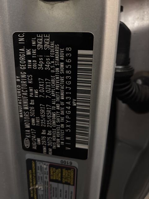 Embark on family-ready adventures with this ONE OWNER, CLEAN CARFAX 2018 Kia Sorento LX, a KIA CERTIFIED PRE-OWNED gem and FRESH LOCAL TRADE! Powered by a reliable 2.4L 4-cylinder engine delivering 185HP, this ALL-WHEEL-DRIVE SUV combines up to 29 MPG highway efficiency with a 6-speed automatic transmission and spacious 3rd-row seating for up to 7 passengers. Enjoy YES Essentials cloth seats with a front center armrest, dual-zone automatic climate control from the LX Cool & Connected Package, and a UVO eServices audio system with AM/FM/CD/MP3/SiriusXM, Bluetooth hands-free, iPod/USB connectivity, and steering wheel controls. Safety shines with a rearview camera, parking assist, electronic stability control, traction control, ABS brakes, and multiple airbags. 17 alloy wheels, heated mirrors, remote keyless entry, power doors/locks/mirrors/windows, roof rails, carpeted floor mats, cargo net, and a sleek finish, this Sorento LX delivers practical versatility and everyday comfort for buyers seeking certified used AWD SUVs with low mileage, modern connectivity, and exceptional value!