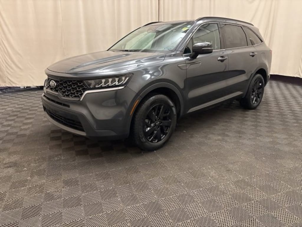 Elevate family adventures with this ONE OWNER, CLEAN CARFAX 2021 Kia Sorento S, a KIA CERTIFIED PRE-OWNED standout and FRESH LOCAL TRADE! Powered by a responsive 2.5L 4-cylinder engine delivering 191HP, this ALL-WHEEL-DRIVE SUV combines up to 27 MPG highway efficiency with an 8-speed automatic transmission, tow-hitch capability, and spacious 3rd-row seating for up to 7 passengers with reclining capability. Indulge in heated SynTex artificial leather seats with power driver adjustments, a heated steering wheel, panoramic power sunroof with sunshade from the Panoramic Sunroof Package, dual-zone automatic climate control, and a 12.3 navigation system with Apple CarPlay & Android Auto, Bluetooth hands-free, iPod/USB connectivity, and steering wheel controls on a 6-speaker SiriusXM audio system. Safety excels with blind-spot detection, lane-departure warning, parking assist, a rearview camera, auto high-beam headlights, 911 Connect emergency communication, electronic stability control, traction control, and multiple airbags. With 18 gloss black alloy wheels, fog lamps, heated mirrors, keyless entry/start with remote start, power liftgate, power doors, locks, mirrors, windows, roof rails, carpeted floor mats, and a sleek finish, this Sorento S redefines versatile premium family travel for buyers seeking certified used AWD SUVs with low mileage, advanced tech, and exceptional value!