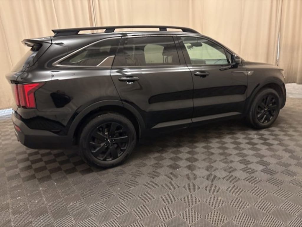 Elevate family adventures with this ONE OWNER, CLEAN CARFAX 2023 Kia Sorento S X-Line, a KIA CERTIFIED PRE-OWNED standout and FRESH LOCAL TRADE! Powered by a responsive 2.5L 4-cylinder engine delivering 191HP, this ALL-WHEEL-DRIVE SUV combines up to 27 MPG highway efficiency with an 8-speed automatic transmission, tow-hitch capability, and spacious 3rd-row seating for up to 7 passengers with reclining capability. Indulge in heated SynTex artificial leather seats with power driver adjustments, dual-zone automatic climate control, a power sunroof with sunshade from the Panoramic Sunroof Package, LED interior lighting, and a 12.3 navigation system with Apple CarPlay & Android Auto, Bluetooth hands-free, iPod/USB connectivity, and steering wheel controls on a 6-speaker SiriusXM audio system. Safety excels with blind-spot detection, lane-departure warning, parking assist, a rearview camera, auto high-beam headlights, 911 Connect emergency communication, electronic stability control, traction control, and multiple airbags. With 18 gloss black alloy wheels, fog lamps, heated mirrors, keyless entry/start with remote start, power liftgate, power doors, locks, mirrors, windows, carpeted floor mats, roof rails, and a sleek finish, this Sorento S X-Line redefines versatile premium family travel for buyers seeking certified used AWD SUVs with low mileage, advanced tech, and exceptional value!
