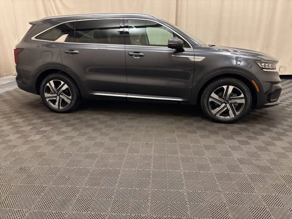 Experience eco-luxury with this ONE OWNER, CLEAN CARFAX 2022 Kia Sorento Plug-In Hybrid SX Prestige, a KIA CERTIFIED PRE-OWNED gem and FRESH LOCAL TRADE for sale in Cleveland OH! Powered by a 1.6L I4 turbocharged hybrid engine delivering 261HP, this ALL-WHEEL-DRIVE SUV offers up to 34 MPG combined and 32 miles of electric range with a 6-speed automatic transmission and a tow-hitch for up to 2,000 lbs towing. Indulge in heated and ventilated genuine perforated leather seats with power adjustments and memory, a heated steering wheel, panoramic power sunroof, and a 10.25 touchscreen navigation with Apple CarPlay & Android Auto, Bluetooth hands-free, iPod/USB, and steering wheel controls on a 12-speaker premium audio system. Safety excels with blind-spot detection, lane-departure warning, parking assist, a rearview camera, UVO Link emergency communication, and multiple airbags. With 19 machine-finished alloy wheels, fog lamps, heated mirrors, keyless entry/start with remote start, power doors, locks, mirrors, windows, power liftgate, LED interior lighting, and a sleek Snow White Pearl finish, this Sorento PHEV SX Prestige redefines hybrid sophistication for buyers seeking certified used AWD SUVs with low mileage, advanced tech, and premium value!