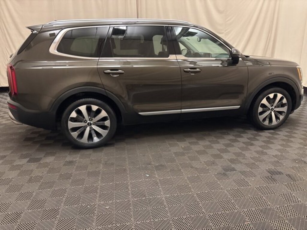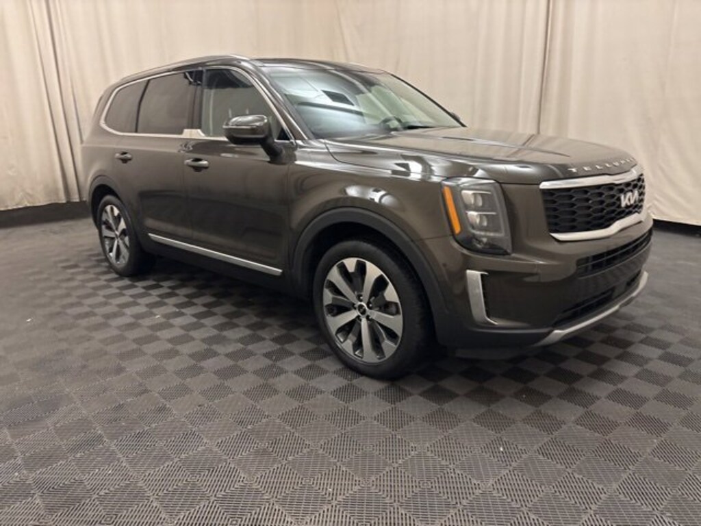 Elevate family luxury with this ONE OWNER, CLEAN CARFAX 2022 Kia Telluride EX, a KIA CERTIFIED PRE-OWNED masterpiece and FRESH LOCAL TRADE! Powered by a commanding 3.8L V6 delivering 291HP, this ALL-WHEEL-DRIVE SUV achieves up to 24 MPG highway with an 8-speed automatic and 5,000 lbs towing via the Towing Package with tow hitch and self-leveling rear suspension. Indulge in heated & ventilated leather seats with power adjustments, 2nd-row captainâs chairs, power moonroof, and a 12.3 navigation system with Apple CarPlay & Android Auto, Bluetooth hands-free, iPod/USB connectivity, and steering wheel controls. Safety excels with blind-spot detection, lane-departure warning, parking assist, a rearview camera, 911 Connect emergency communication, auto high-beam LED headlamps, and multiple airbags. With 20 machined alloy wheels, satin chrome roof rails, fog lamps, heated mirrors, keyless entry/start with remote start, power liftgate, power doors, locks, mirrors, windows, carpeted floor mats, and a sleek Everlasting Silver finish, this Telluride EX redefines premium family travel for buyers seeking certified used AWD SUVs with low mileage, advanced tech, and exceptional value!