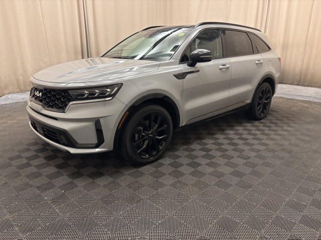 Elevate family adventures with this ONE OWNER, CLEAN CARFAX 2023 Kia Sorento SX, a KIA CERTIFIED PRE-OWNED gem and FRESH LOCAL TRADE for sale in Cleveland OH! Powered by a turbocharged 2.5L 4-cylinder engine delivering 281HP and 311 lb-ft of torque, this ALL-WHEEL-DRIVE SUV blends strong performance with up to 24 MPG highway efficiency and 3rd-row seating for up to 7 passengers with reclining capability, while the included tow-hitch handles up to 3,500 lbs of towing. Indulge in heated SynTex artificial leather seats with power driver and passenger adjustments, a heated steering wheel, power moonroof, dual-zone automatic climate control, and a 12.3 navigation system with Apple CarPlay & Android Auto, Bluetooth hands-free, iPod/USB connectivity, and steering wheel controls on a 6-speaker SiriusXM audio system. Safety leads with blind-spot detection, lane-departure warning, parking assist, a rearview camera, auto high-beam headlights, rain-sensing wipers, electronic stability control, traction control, and multiple airbags. With 20 gloss black alloy wheels, fog lamps, heated mirrors, keyless entry/start with remote start, power liftgate, power doors, locks, mirrors, windows, roof rails, carpeted floor mats, and a sleek Ebony Black finish, this Sorento SX redefines versatile premium family travel for buyers seeking certified used AWD SUVs with low mileage, advanced tech, and exceptional value!