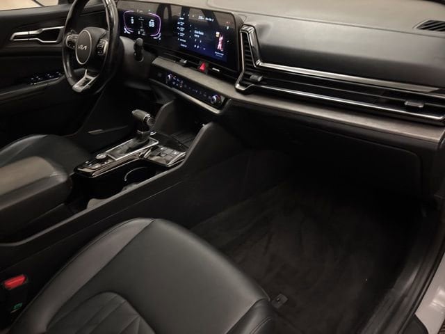 Elevate your adventures with this ONE OWNER, CLEAN CARFAX 2023 Kia Sportage X-Line, a KIA CERTIFIED PRE-OWNED standout and FRESH LOCAL TRADE! Powered by a responsive 2.5L 4-cylinder engine delivering 187HP, this ALL-WHEEL-DRIVE SUV achieves up to 28 MPG highway with an 8-speed automatic transmission for smooth, confident performance. Indulge in heated premium leatherette seats with power driver adjustment, dual-zone automatic climate control, panoramic sunroof, smart power liftgate, LED interior lighting, and the X-Line Premium Package with a 12.3 navigation system featuring Apple CarPlay & Android Auto, Bluetooth hands-free, iPod/USB connectivity, and steering wheel controls on a harman/kardon® 6-speaker premium audio system. Safety excels with blind-spot detection, lane-departure warning, parking assist, auto high-beam headlights, rain-sensing wipers, a rearview camera, electronic stability control, and multiple airbags. With 19 gloss black alloy wheels, fog lamps, heated mirrors, keyless entry/start with remote start, power doors, locks, mirrors, windows, carpeted floor mats X-Line, and a rugged finish, this Sportage X-Line redefines bold versatility for buyers seeking certified used AWD SUVs with low mileage, advanced tech, and premium value!