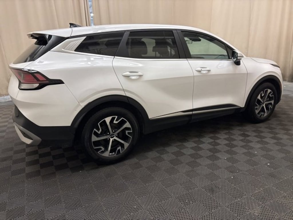 Elevate your drive with this ONE OWNER, CLEAN CARFAX 2023 Kia Sportage EX, a KIA CERTIFIED PRE-OWNED gem and FRESH LOCAL TRADE! Powered by a responsive 2.5L 4-cylinder delivering 187HP, this FWD SUV achieves up to 32 MPG highway with an 8-speed automatic transmission for smooth, efficient performance. Indulge in heated leatherette seats with power driver adjustment, dual-zone automatic climate control, and a 12.3 navigation system with Apple CarPlay & Android Auto, Bluetooth hands-free, iPod/USB connectivity, and steering wheel controls on a 6-speaker premium audio system. Safety excels with blind-spot detection, lane-departure warning, parking assist, a rearview camera, auto high-beam headlights, rain-sensing wipers, electronic stability control, and multiple airbags. With 18 machine finish alloy wheels, fog lamps, heated mirrors, keyless entry/start with remote start, power doors, locks, mirrors, windows, carpeted floor mats, and a sleek Glacial White Pearl finish, this Sportage EX redefines compact luxury for buyers seeking certified used SUVs with low mileage, advanced tech, and exceptional value!