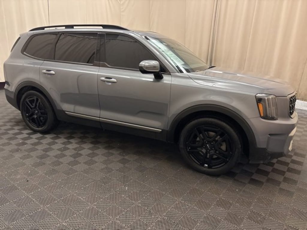Dominate every journey with this ONE OWNER, CLEAN CARFAX 2023 Kia Telluride SX X-Line, a KIA CERTIFIED PRE-OWNED masterpiece and FRESH LOCAL TRADE! Powered by a commanding 3.8L V6 delivering 291HP, this ALL-WHEEL-DRIVE SUV with self-leveling rear suspension and tow-hitch conquers up to 5,000 lbs towing while achieving 24 MPG highway. Luxuriate in heated & ventilated leather seats (front + 2nd row), heated steering wheel, power moonroof, and a 12.3 navigation system with harman/kardon® 10-speaker premium audio, Apple CarPlay & Android Auto, Bluetooth hands-free, iPod/USB, and steering wheel controls. Safety excels with blind-spot detection, lane-departure warning, parking assist, a rearview camera, auto high-beam headlights, 911 Connect, and multiple airbags. With 20 X-Line exclusive black alloy wheels, fog lamps, heated mirrors, keyless entry/start with remote start, power liftgate, power doors, locks, mirrors, windows, and a rugged Midnight Lake Blue finish, this Telluride SX X-Line redefines bold family luxury for buyers seeking certified used AWD SUVs with low mileage, advanced tech, and premium value!