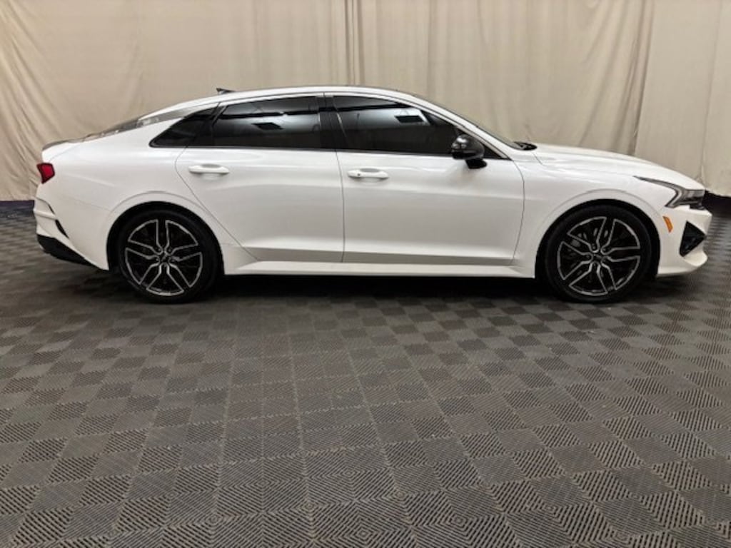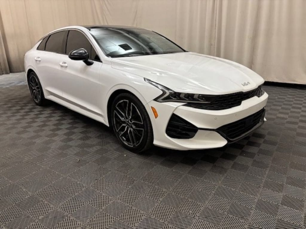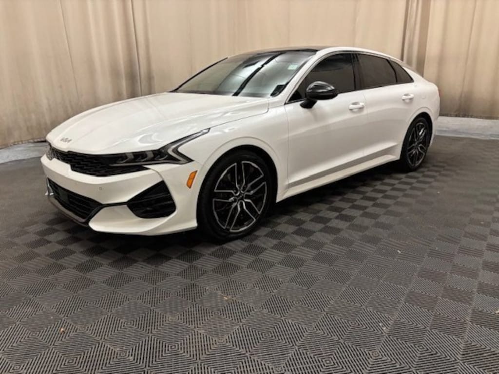 Ignite your drive with this ONE OWNER, CLEAN CARFAX 2024 Kia K5 GT, a KIA CERTIFIED PRE-OWNED standout and FRESH LOCAL TRADE for sale in Cleveland OH! Powered by a turbocharged 2.5L 4-cylinder engine delivering 290HP and 311 lb-ft of torque, this FWD sedan sprints with exhilarating performance and up to 27 MPG highway efficiency via an 8-speed automatic transmission. Luxuriate in ventilated leather seats with power adjustments and memory for the driver's seat and mirrors, a heated steering wheel, and a power sunroof, while the GT1 PACKAGE elevates audio with a Bose premium system and connectivity through navigation, Apple CarPlay & Android Auto, Bluetooth hands-free, iPod/USB, and steering wheel controls. Safety excels with forward collision avoidance-assist, blind-spot detection, highway driving assist, parking collision avoidance-reverse, surround view monitor, parking distance warning forward/reverse, safe exit assist, and a rearview camera, complemented by LED projection headlamps, fog lamps, and navigation-based smart cruise control with stop & go. With power-folding outside mirrors with LED turn signals, remote start, keyless entry/start, power doors, locks, mirrors, windows, auto up/down rear windows, active sound design, and a sleek Glacial White Pearl finish, this K5 GT redefines sporty sophistication for buyers seeking certified used sedans with low mileage, advanced driver aids, and premium features!