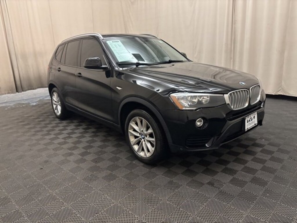 2017 BMW X3 xDrive28i air conditioning, automatic seats, Automatic transmission, AWD/4WD, backup camera, iPod/USB, keyless entry, keyless start, parking assist, power doors, power locks, power mirrors, power windows, steering wheel controls, 8-Speed Automatic, 18 x 8.0 V Spoke (Style 307) Wheels, 3.39 Axle Ratio, 4-Wheel Disc Brakes, 9 Speakers, ABS brakes, Air Conditioning, Alloy wheels, AM/FM radio, Anti-Theft AM/FM Stereo CD/MP3 Player, Anti-whiplash front head restraints, Auto-dimming door mirrors, Auto-dimming Rear-View mirror, Automatic temperature control, Bodyside moldings, Brake assist, Brushed Aluminum Trim, Bumpers: body-color, CD player, Delay-off headlights, Driver door bin, Driver vanity mirror, Dual front impact airbags, Dual front side impact airbags, Electronic Stability Control, Emergency communication system: BMW Assist eCall, Four wheel independent suspension, Front anti-roll bar, Front Bucket Seats, Front Center Armrest, Front dual zone A/C, Front fog lights, Front reading lights, Fully automatic headlights, Garage door transmitter, Genuine wood console insert, Hands-Free Bluetooth & USB Audio Connection, HD Radio, Heated Front Seats, Hi-Fi Sound System, Illuminated entry, Leather steering wheel, Low tire pressure warning, Memory seat, Occupant sensing airbag, Outside temperature display, Overhead airbag, Panic alarm, Panoramic Moonroof, Park Distance Control, Passenger door bin, Passenger vanity mirror, Power door mirrors, Power driver seat, Power Front Bucket Seats, Power Liftgate, Power passenger seat, Power steering, Power windows, Radio BMW Professional, Radio data system, Rain sensing wipers, Rear anti-roll bar, Rear fog lights, Rear reading lights, Rear seat center armrest, Rear window defroster, Rear window wiper, Rear-View Camera, Remote keyless entry, Roof rack: rails only, Satin Aluminum Roof Rails, Security system, SensaTec Leatherette Upholstery, Speed control, Speed-sensing steering, Speed-Sensitive Wipers, Split folding rear seat, Spoiler, Sport steering wheel, Steering wheel mounted audio controls, Tachometer, Telescoping steering wheel, Tilt steering wheel, Traction control, Trip computer, Turn signal indicator mirrors, Variably intermittent wipers, 8-Speed Automatic.