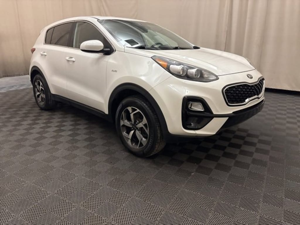 Tackle any adventure with this ONE OWNER, CLEAN CARFAX 2021 Kia Sportage LX, a FRESH LOCAL TRADE for sale in Cleveland OH! Powered by a reliable 2.4L 4-cylinder engine delivering 181HP and 175 lb-ft of torque, this ALL-WHEEL-DRIVE SUV achieves up to 26 MPG highway with a 6-speed automatic transmission for smooth, confident performance. Enjoy cloth seats with a 6-way manual driverâs adjustment, air conditioning, and a 6-speaker AM/FM audio system with Apple CarPlay & Android Auto, Bluetooth hands-free, iPod/USB connectivity, and steering wheel-mounted controls for seamless entertainment. Safety shines with a rearview camera, auto high-beam headlights, electronic stability control, traction control, ABS brakes, and multiple airbags. With 17 machine-finished alloy wheels, fog lamps, power doors, locks, mirrors, windows, remote keyless entry, carpet floor mats, cargo net, and a sleek Clear White finish, this Sportage LX delivers rugged versatility for buyers seeking certified used AWD SUVs with low mileage, modern tech, and exceptional value!