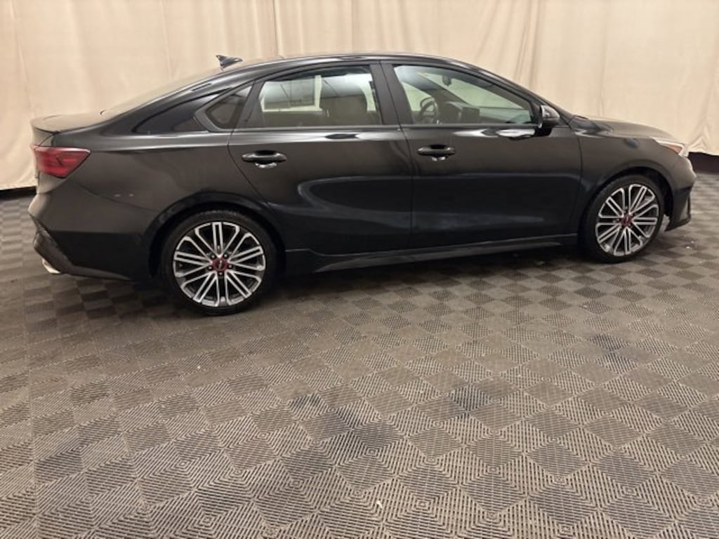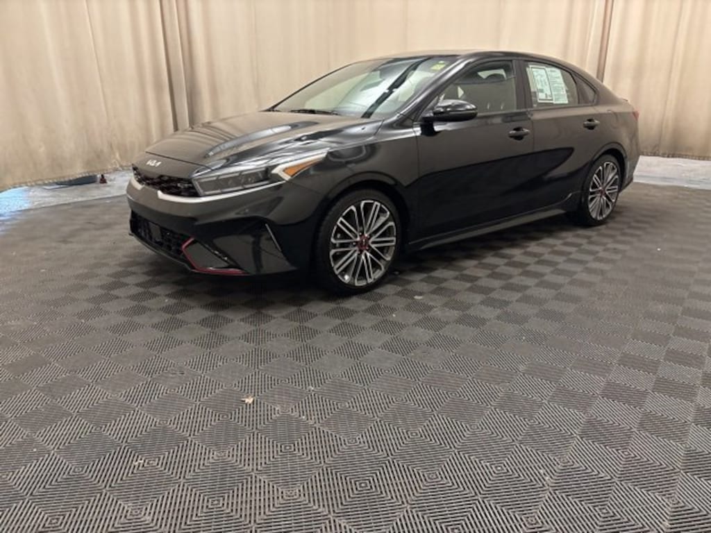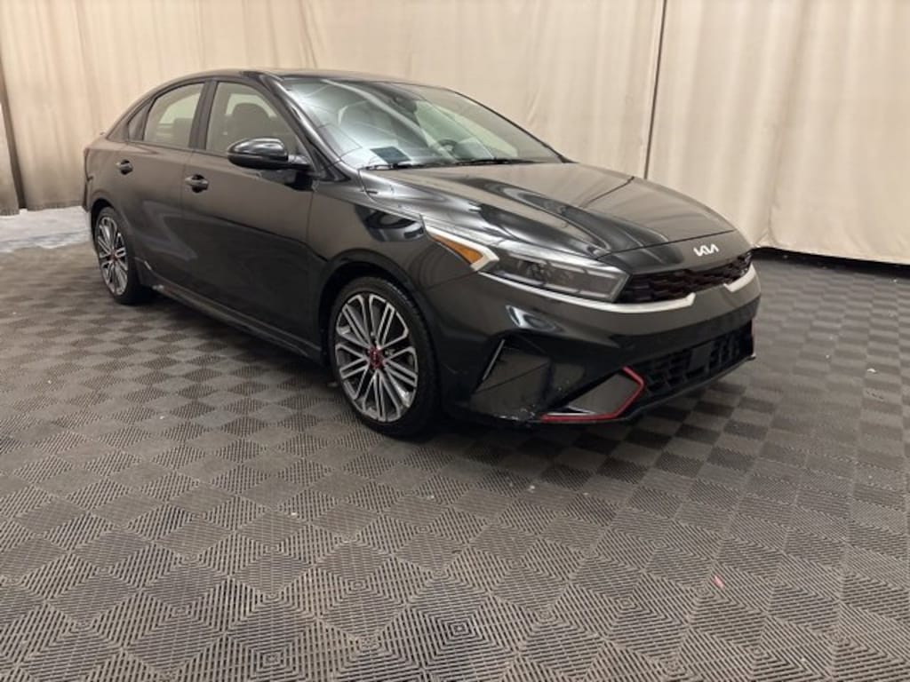 2022 Kia Forte GT 10-Way Power Driver's Seat, 4-Wheel Disc Brakes, 6 Speakers, ABS brakes, Air Conditioning, Alloy wheels, AM/FM radio: SiriusXM, Apple CarPlay & Android Auto, Auto High-beam Headlights, Automatic temperature control, Brake assist, Bumpers: body-color, Cloth & Leatherette Seat Trim, Delay-off headlights, Driver door bin, Driver vanity mirror, Dual front impact airbags, Dual front side impact airbags, Electronic Parking Brake (EPB) w/Auto Hold, Electronic Stability Control, Emergency communication system: UVO eServices, Exterior Parking Camera Rear, Forward Collision Avoidance-Assist - Cyclist, Four wheel independent suspension, Front anti-roll bar, Front Bucket Seats, Front Center Armrest, Front dual zone A/C, Front fog lights, Front reading lights, Front Sport Seats, Fully automatic headlights, GT2 Package, Heated & Ventilated Front Seats, Heated door mirrors, Highway Driving Assist (HDA), Illuminated entry, Leather Shift Knob, Leather steering wheel, Low tire pressure warning, Navigation System, Navigation-Based Smart Cruise Control (NSCC), Occupant sensing airbag, Outside temperature display, Overhead airbag, Overhead console, Overhead LED Front & Rear Reading Lamps, Panic alarm, Parking Distance Warning-Reverse, Passenger door bin, Passenger vanity mirror, Power door mirrors, Power steering, Power Sunroof, Power windows, Radio data system, Radio: AM/FM/MP3 harman/kardon Premium Audio System, Radio: UVO Link Audio System, Rear anti-roll bar, Rear seat center armrest, Rear window defroster, Remote keyless entry, Security system, Smart Cruise Control, Speed control, Split folding rear seat, Spoiler, Sport steering wheel, Steering wheel mounted audio controls, SynTex Seat Trim, Tachometer, Telescoping steering wheel, Tilt steering wheel, Traction control, Trip computer, Turn signal indicator mirrors, Variably intermittent wipers, Wheels: 18 Machine Finish Alloy.
