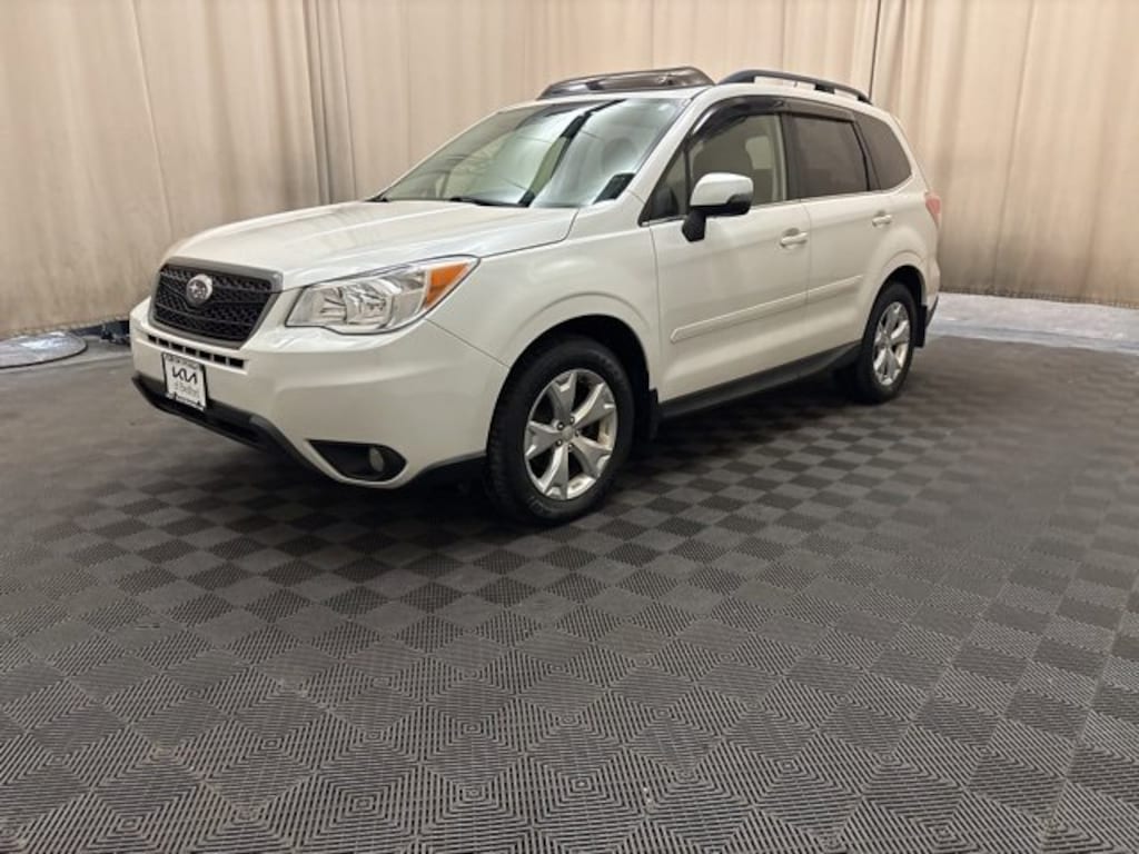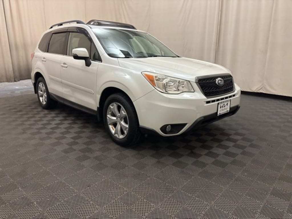 Elevate your adventures with this FRESH LOCAL TRADE 2014 Subaru Forester 2.5i Touring for sale in Cleveland OH! Powered by a reliable 2.5L 4-cylinder boxer engine delivering 170HP, this ALL-WHEEL-DRIVE SUV achieves up to 32 MPG highway with a CVT automatic transmission for smooth, efficient performance. Indulge in heated perforated leather-trimmed seats with power adjustments, dual-zone automatic climate control, a power moonroof, and a navigation system with an 8-speaker harman/kardon® premium audio system, Bluetooth hands-free, iPod/USB connectivity, and steering wheel controls. Safety excels with a rearview camera, electronic stability control, traction control, ABS brakes, and multiple airbags including knee protection. With 17 aluminum alloy wheels, fog lamps, heated mirrors, keyless entry, power doors, locks, mirrors, windows, power liftgate, roof rails, a tow-hitch, and a sleek Venetian Red Pearl finish, this Forester Touring redefines versatile luxury for buyers seeking used AWD SUVs with low mileage, advanced tech, and premium value!